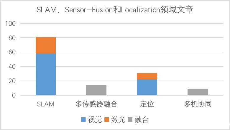 截止至2022年5月24日,2022年ICRA总共收到了3344篇文章的申请,最终1498篇文章通过审核上线发表。在这优秀的1498篇文章中,SLAM、Sensor-Fusion和Localization领域的文章简单整理下来有140篇左右,再进一步细分Visual SLAM相关领域的有大约58篇,利用视觉传感器进行定位的相关论文大约有22篇,Lidar SLAM相关领域文章大约是23篇,基于雷达传感器的定位模块的相关论文就只有9篇左右。