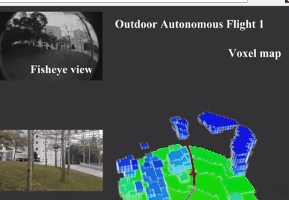 这里举了一个例子。下面是飞行器探索未知环境的动画,通过机器人的运动和它携带的传感器,经过slam算法,就可以实现像图例这样的自动探索,自动建图。这张形成的地图就是机器人对环境的感知。